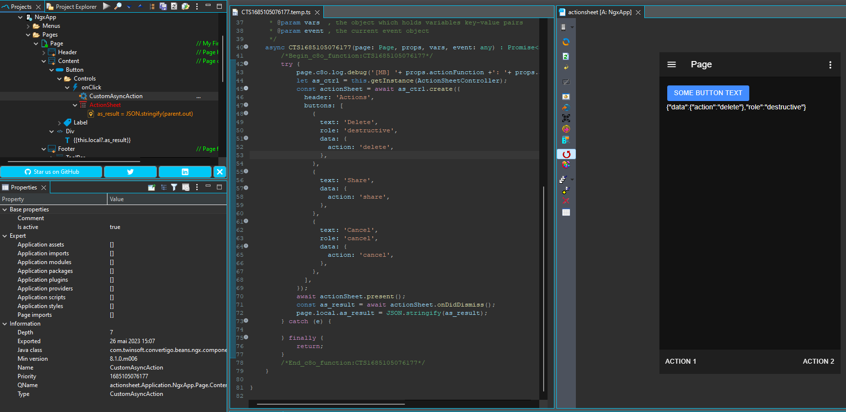 We get the ActionSheetController instance. No need to add Import as it is already done in each Page class.