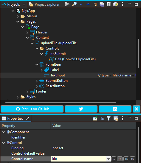 The onSubmit event holds all the form input names based on their 'Control name' property.