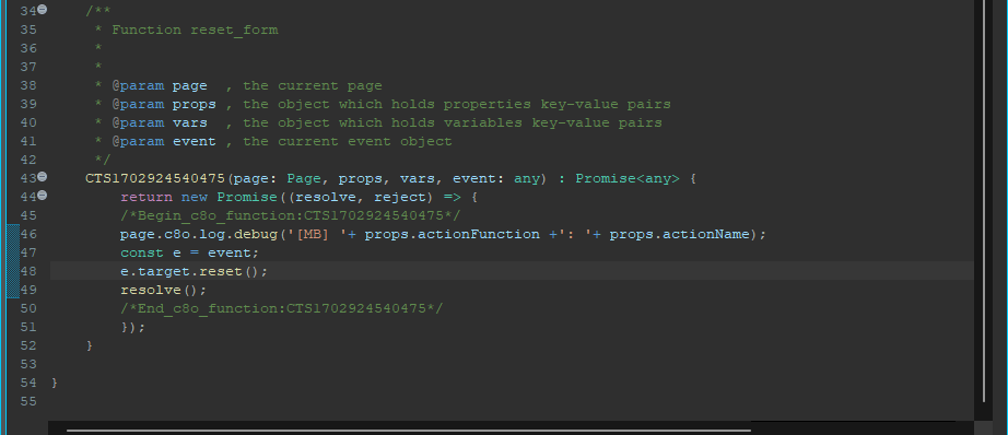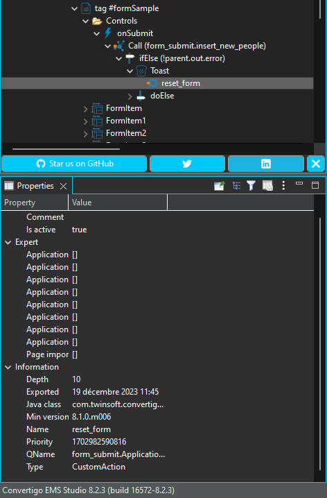 Add a customAction component under the onSubmit event of your Form.