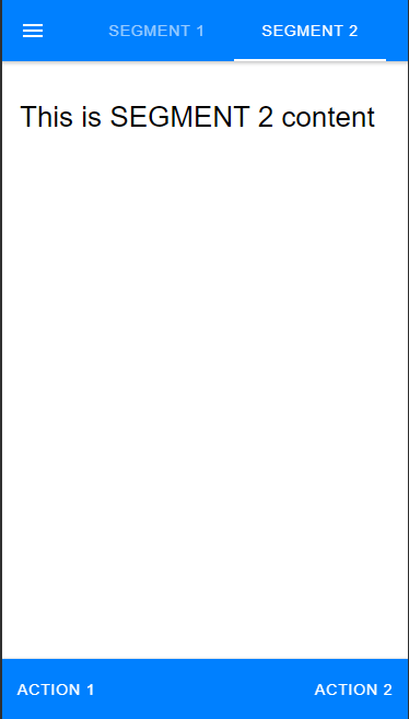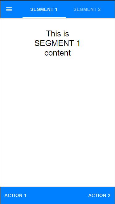 Segments display a group of related buttons, sometimes known as segmented controls, in a horizontal row. They can be displayed inside of a toolbar or the main content. Segment buttons are groups of related buttons inside of a segment. Only one segment button can be selected at a time. Paired with a Switch Directive component, this will allow to change the content of a page depending on the segment button clicked.