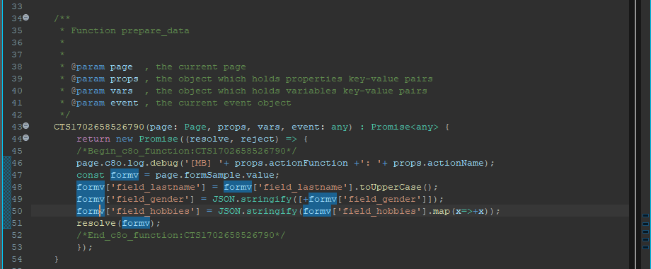 'JSON.stringify(formv['field_hobbies'].map(x=>+x))' : The map function is used to convert all the id values to numbers and not strings. The JSON.stringify function returns an String representation of the Array of ids in the Select.
