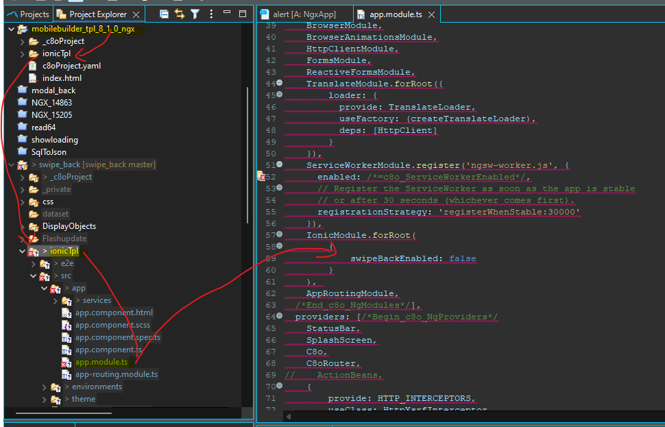 To make permanent and specific changes to your application besides components Palette and Application/Page class, you have to modify the project’s template (ionicTpl of the mobilebuilder_tpl_8_1_0_ngx project, for example):